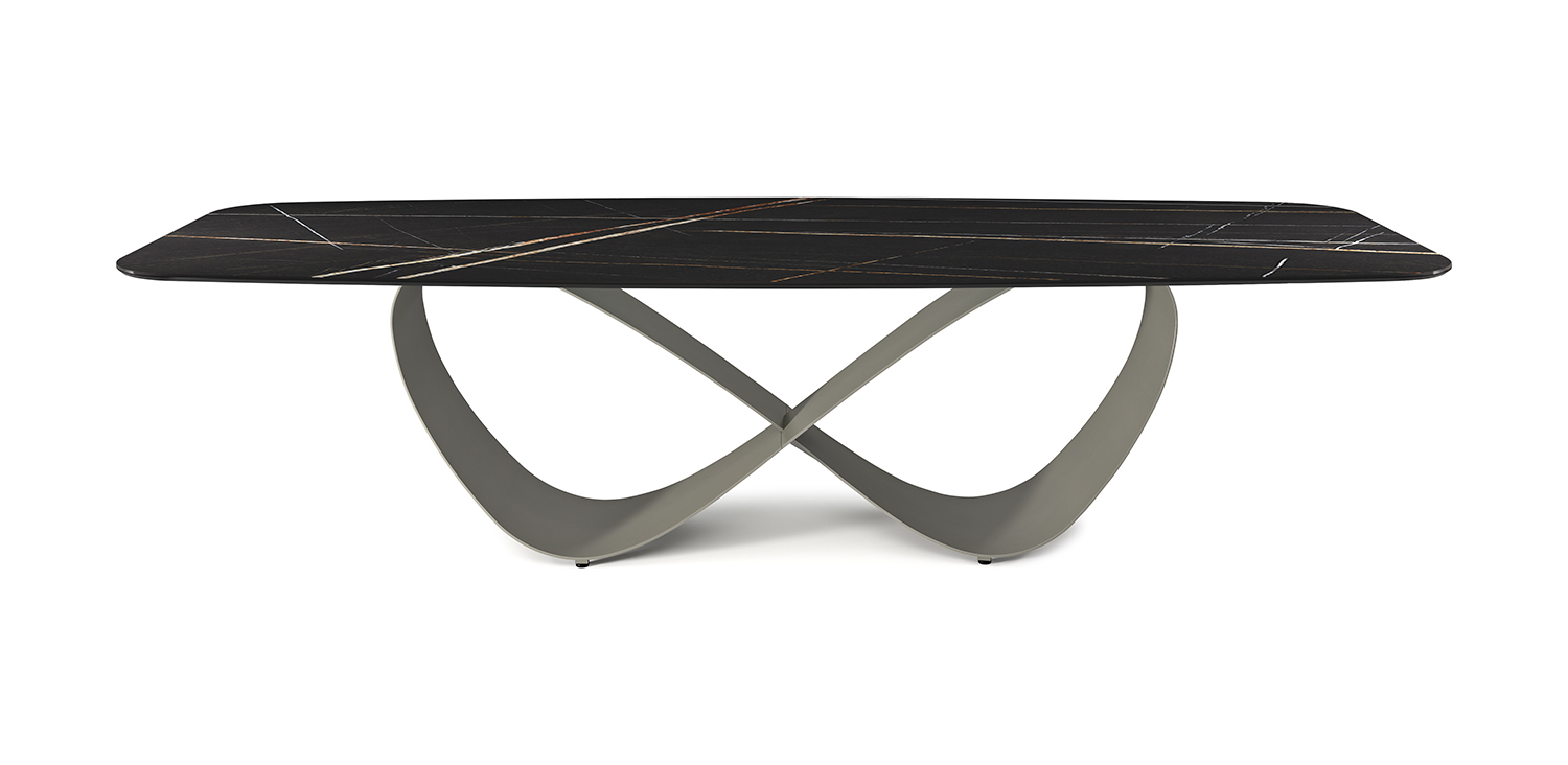 蝴蝶桌是一个蜿蜒曲折的建筑项目,不可能不被注意到。这款设计桌的钢底座成为现代餐厅的明星,具有雕塑般的风格,并参考了自然的优雅。所述玻璃顶部铺设在底座上,其脆弱的外表它创建具有曲线和边缘的粗体和革命组合的对比度。在 Butterfly Keramik 版本中,桌子由 Marmi陶瓷桌面进一步点缀,有几种独特的细微差别。