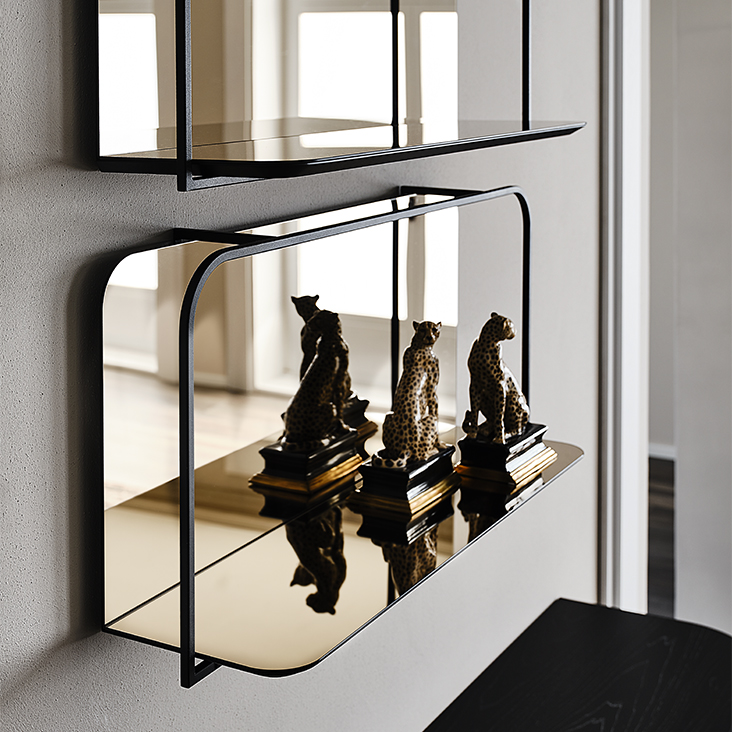 钛 (GFM11) 或黑色 (GFM73) 压纹漆钢和青铜镜面玻璃搁板。