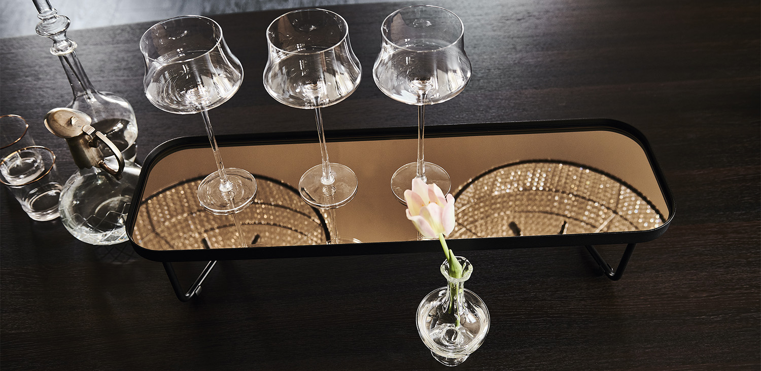咖啡桌的框架为压纹钛 (GFM11) 或黑色 (GFM73) 漆钢框架,或底部为青铜和拉丝青铜顶框架。镜面青铜玻璃顶部。