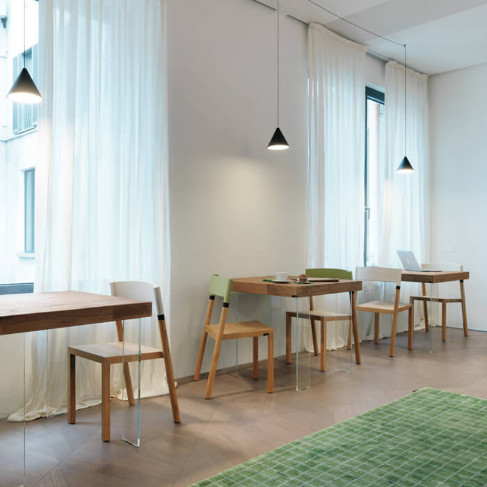 坐着成为一种令人惊讶的体验。 Joynt 是一款现代且多功能的椅子,设计时考虑到了人体工程学。得益于橡胶接头,集成到木结构中,靠背弯曲并支撑背部,给人一种非常舒适的感觉。 椅子可叠放,由橡木制成,背面可以涂上 LAGO 颜色的漆。得益于简单而创新的设计,Joynt 椅子可适应任何环境:公共或私人空间的理想家具。