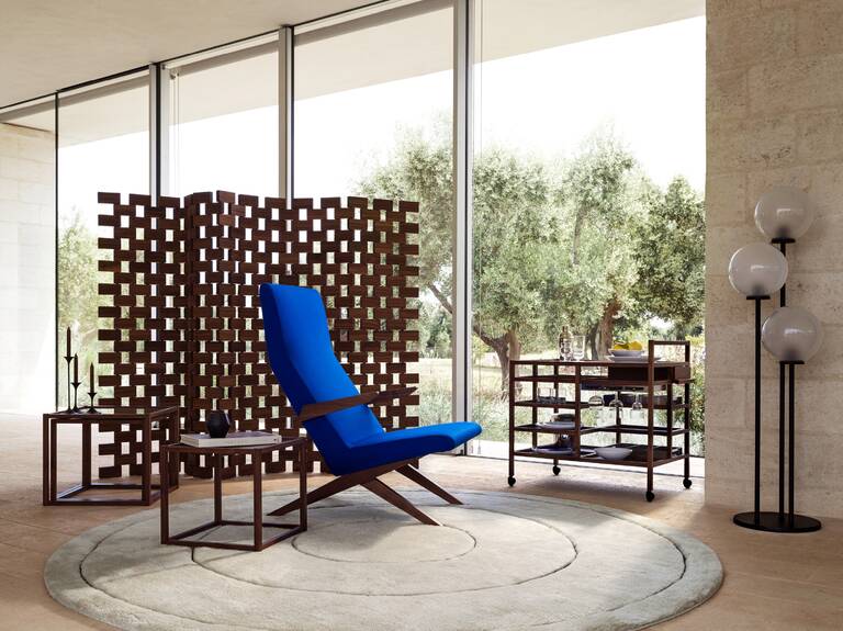 自战后以来,Bodil Kjör在灵活的家具的鼓励下,使房子开得空前的欢乐,这转化为设计新的家庭仪式和对舒适性的新需求。Bodil Kjör 设计了"服务车",一个带彩色中间搁板和不锈钢顶架的实木食品手推车,以克服厨房远离客厅而不丢失的问题,从而有机会在继续与他们对话的同时为客人提供服务。Bodil Kjör掌握了习俗的演变,在电视机前或露台上吃饭和越来越小的房子之间。毫不奇怪,服务车可以在不使用时存储在桌子底下,或保持可见作为一个小而优雅的国内建筑。