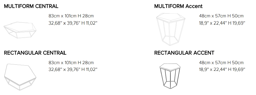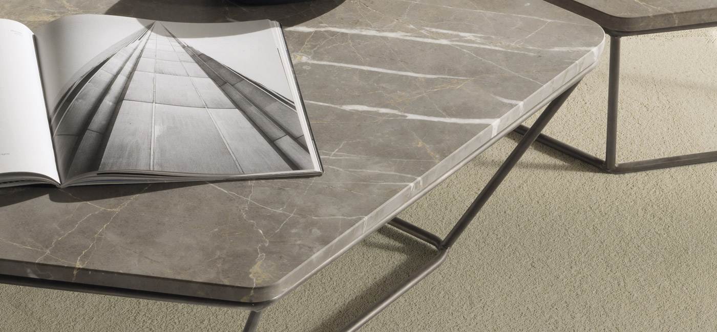 Chocolat 是以独特几何轮廓打造的现代茶几系列。石材和大理石等高档材质的使用,契合了内饰设计行业的最新潮流。可将几张茶几组合在一起,成为一张大桌子。所有的桌面均进行防水和防污渍处理。