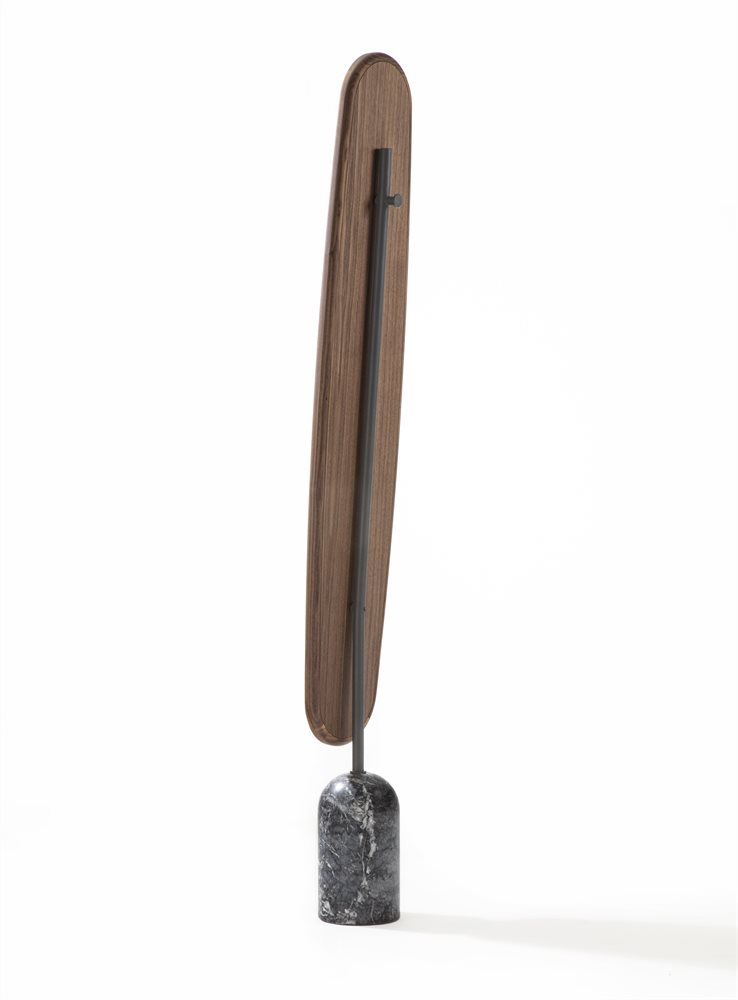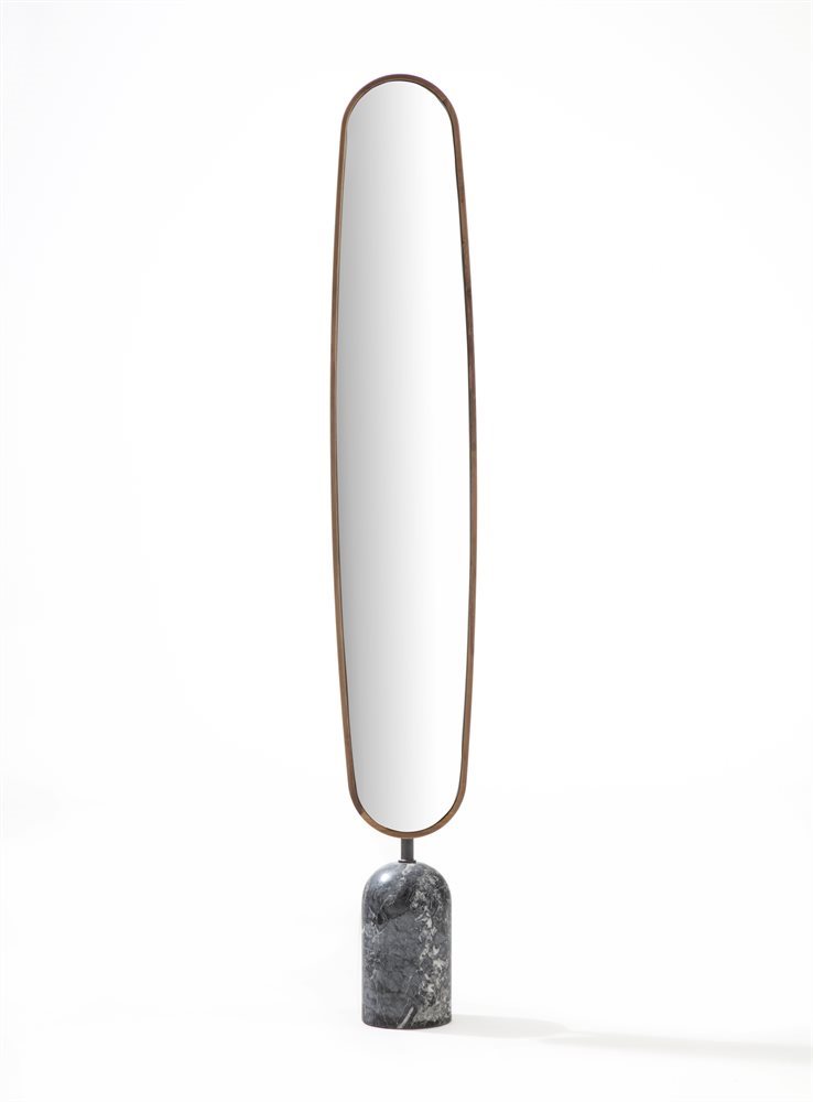 镜子与圆柱形底座在白色卡拉拉大理石或卡尼科灰色,中央茎在漆金属与皮尤特灰色完成和框架在固体卡纳莱塔核桃。