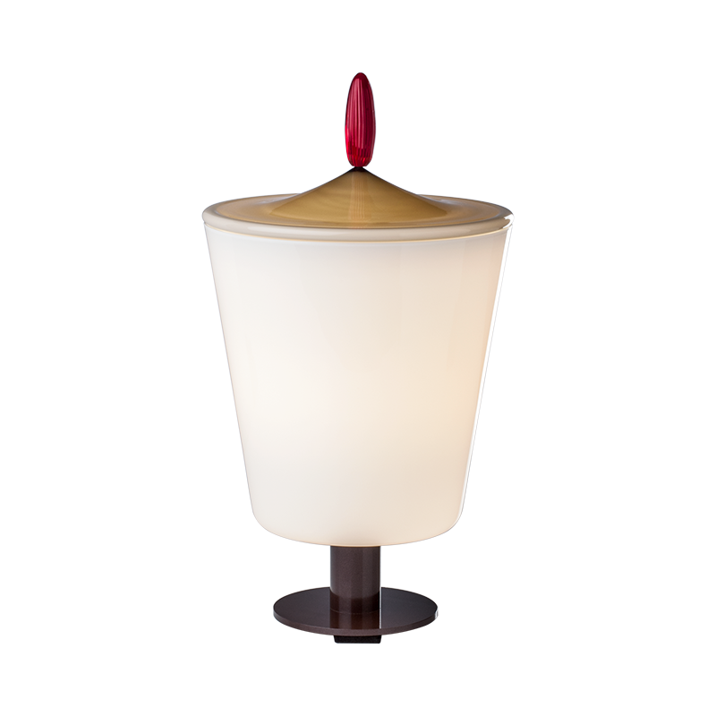 实际上,它既是花瓶又是灯,上面有金属底座和浅色盖子,上面有顶峰。它的整体外观巧妙地向远东点头,带回了远方的古老旅程的记忆。Lou 专供餐桌灯使用。