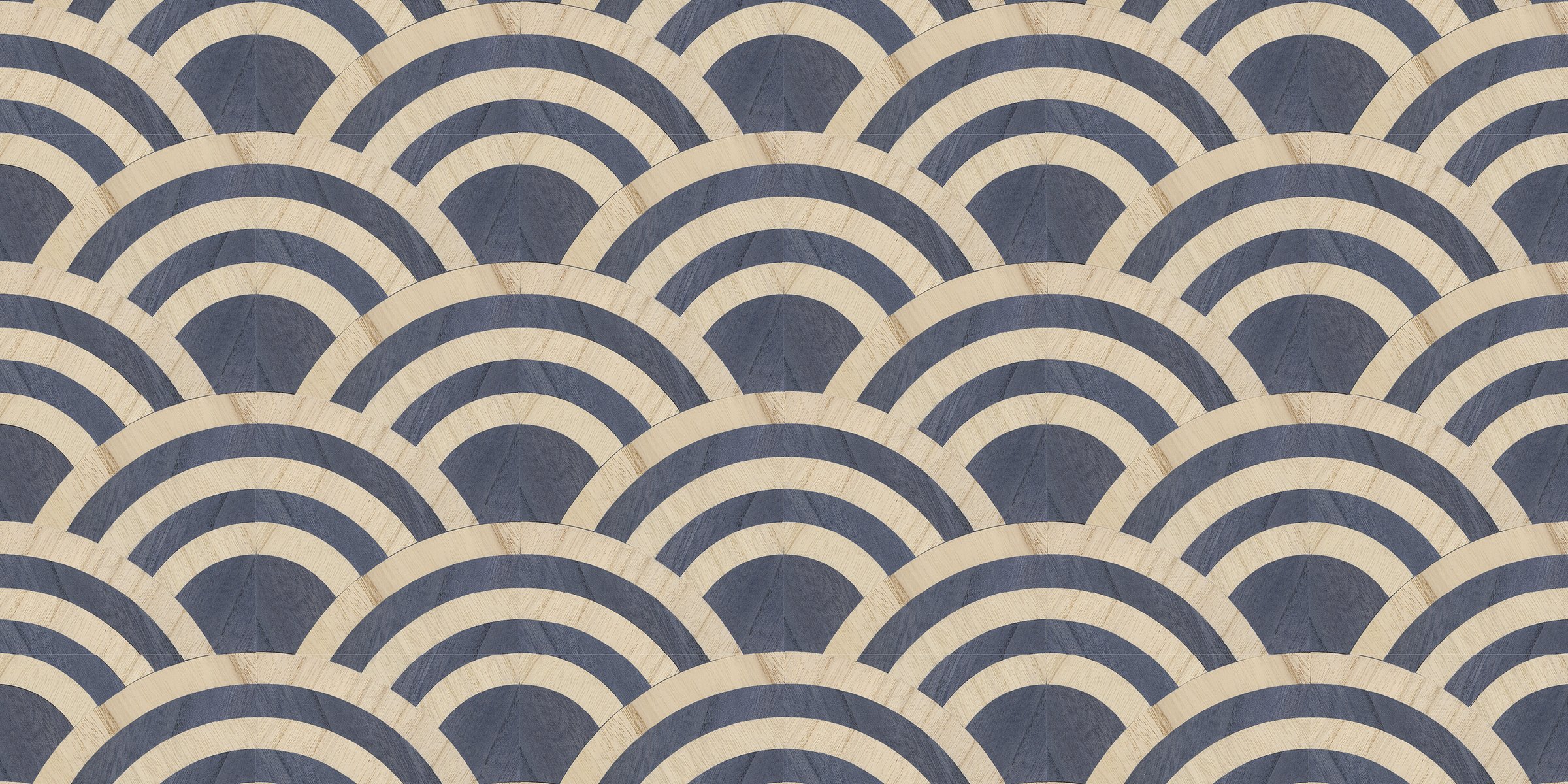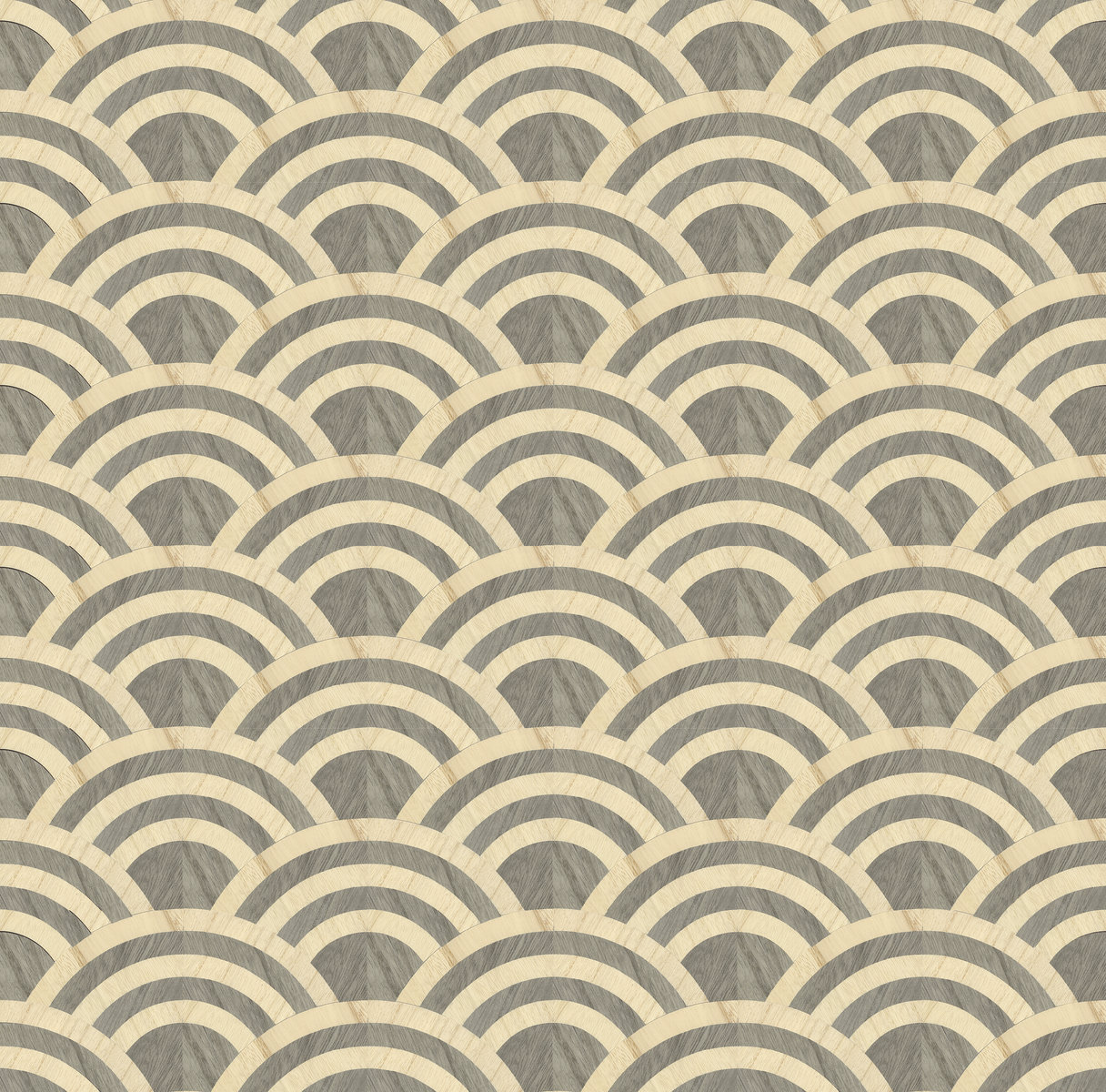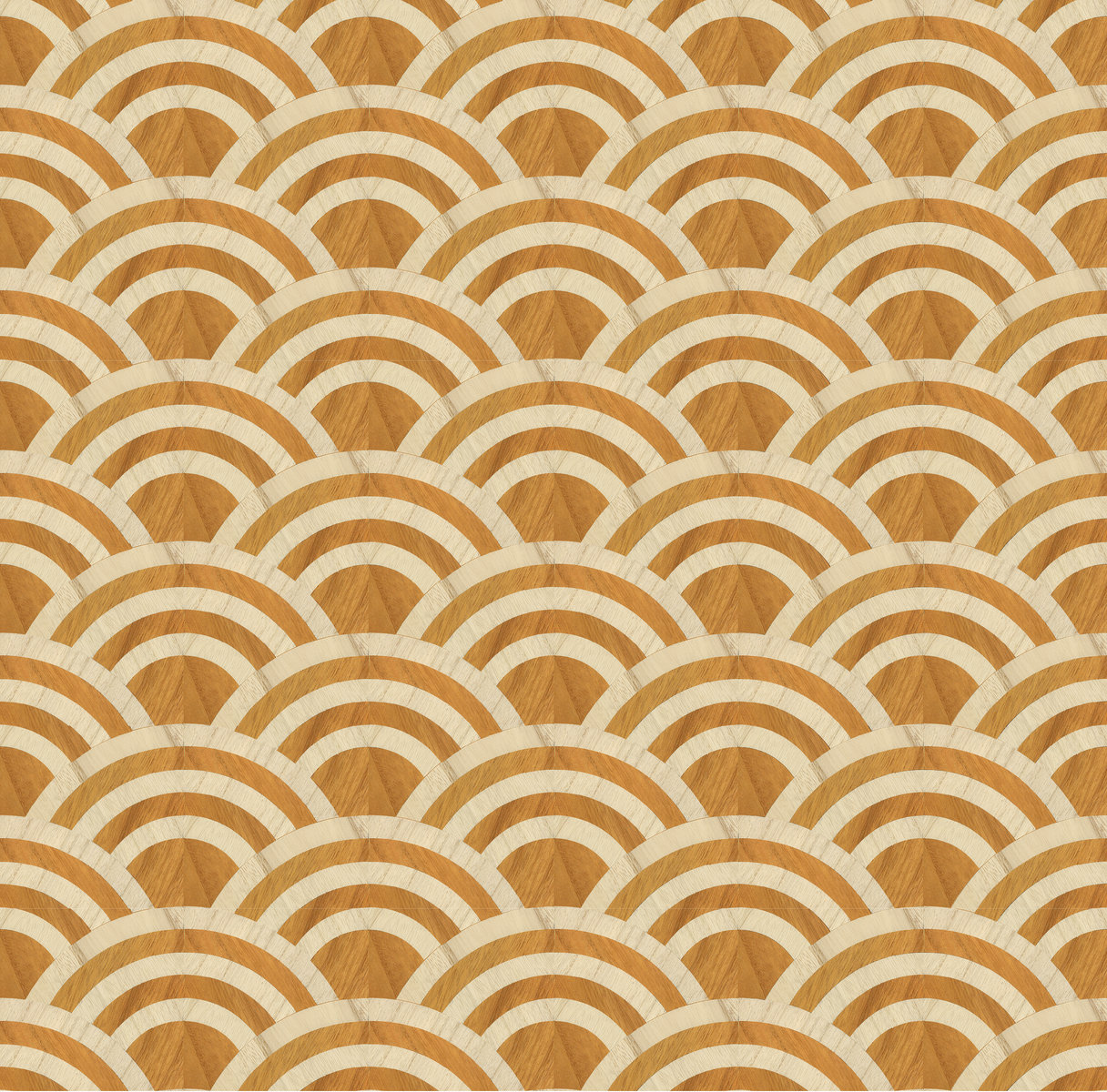 重叠的 O, 由木贴面镶嵌物创建, 类似于海洋的滚动波。独特的壁墙覆盖的古代西盖哈图案象征着水波,代表着好运、力量和韧性。