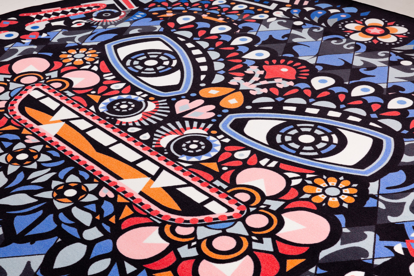 怪物地毯是马塞尔·万德的怪物系列的一部分。有一天,马塞尔醒来,清楚地记得一个梦幻般的景象。随着睡眠的最后残余从他阴云密布的头脑中退出,他写下了他对来世的憧憬。关于死亡、蝴蝶、缪斯和永恒派对的故事。这个故事启发了怪物系列,包括这圆地毯。任何房间的醒目,其明亮的颜色和一个耐人寻味的背景故事。