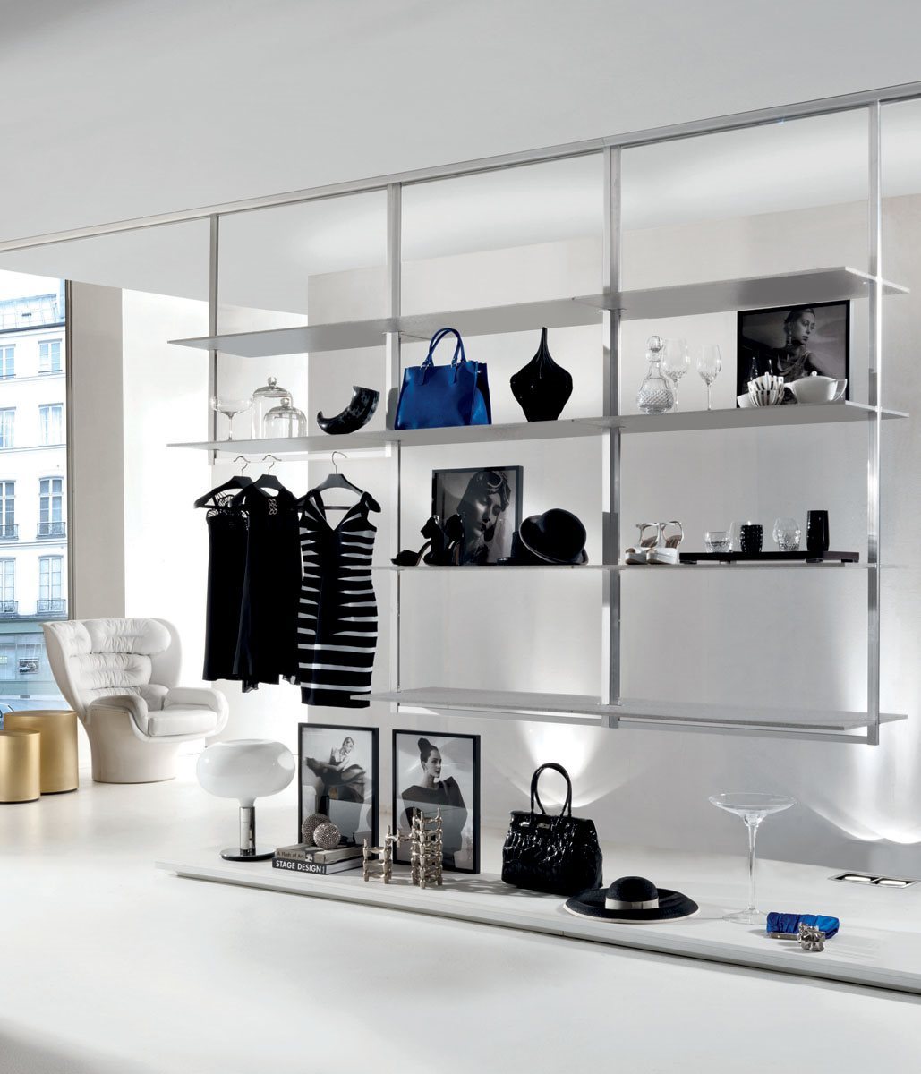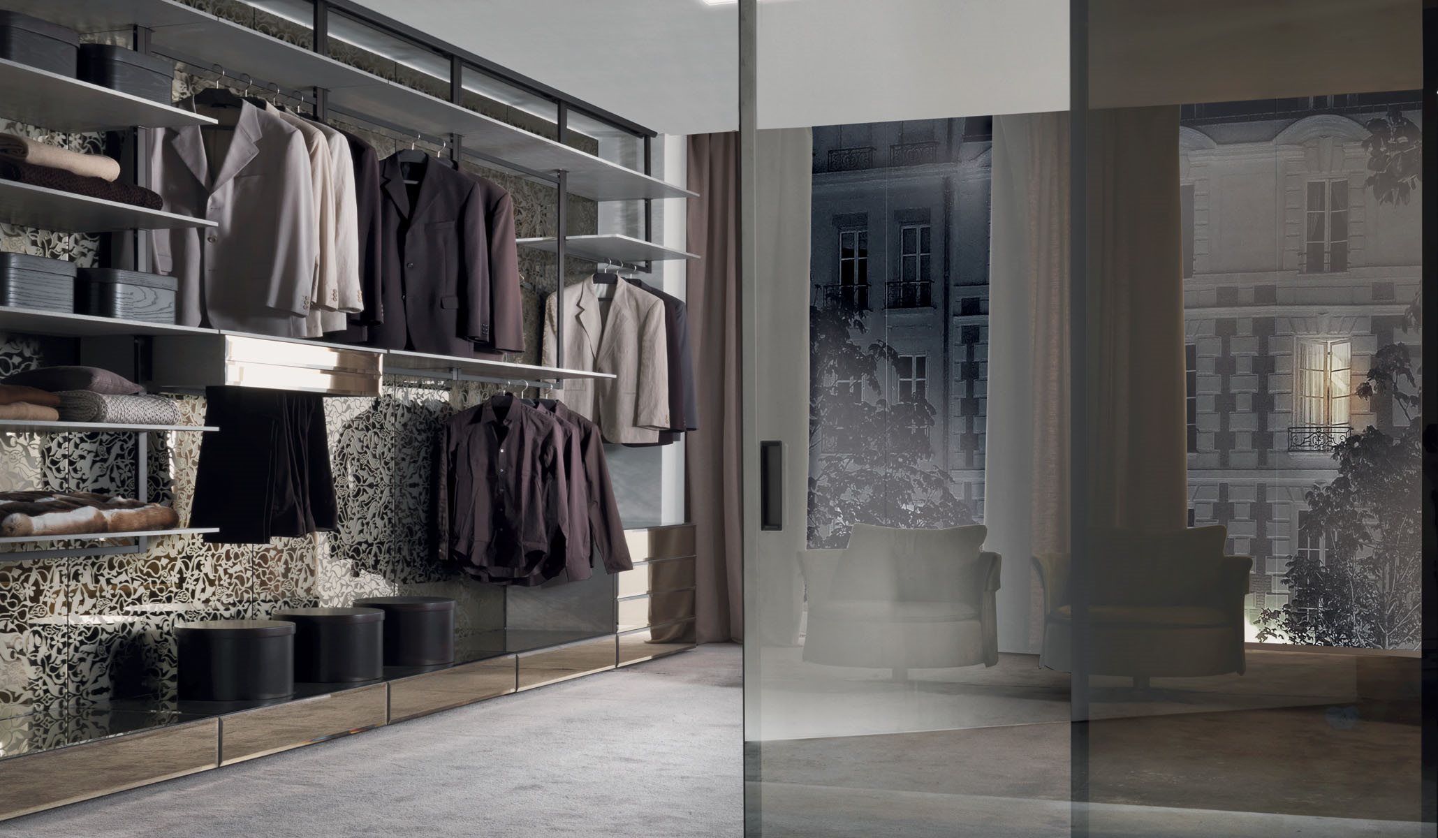 该创新系列专用于包含步入式衣帽间的房间。该项目首创并发展出固定于天花板的独有铝梁,梁上能够挂上格架,并根据个人要求放置搁板和配件。此外,细木护壁板结构自由,支持将系统按需布置于更自由的空间。最大的设计灵活性与对美感的不懈追求相结合,能够创造出适合您的私人空间的个性化步入式衣帽间。