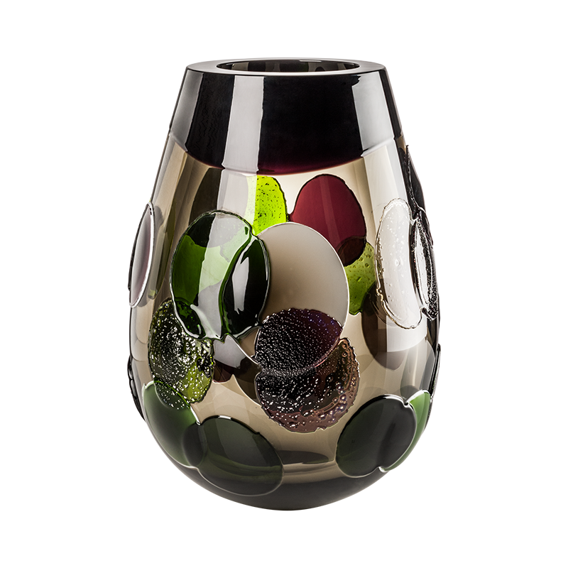 插入玻璃中的银叶为贴花增添了意想不到的珍贵天赋,与底座的微妙色调以及装饰和颈带的深色色调形成鲜明对比。金属变成波光粼粼的星星,无数而遥远。伊曼纽尔·巴布莱德的9件限量版作品塑造成壮观的景色。