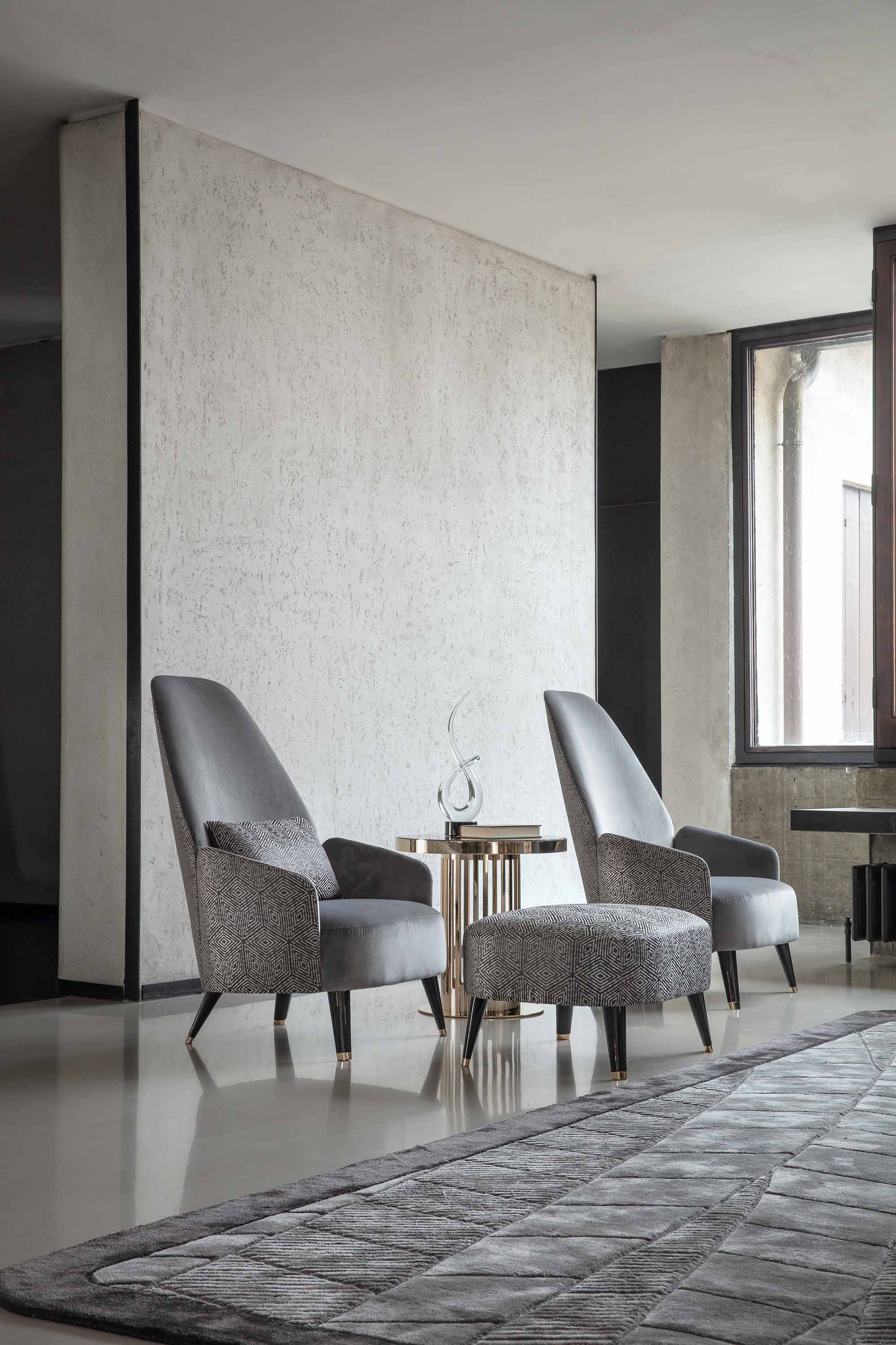 奥斯曼偶尔坐椅子。浅金色铬不锈钢的基本细节。