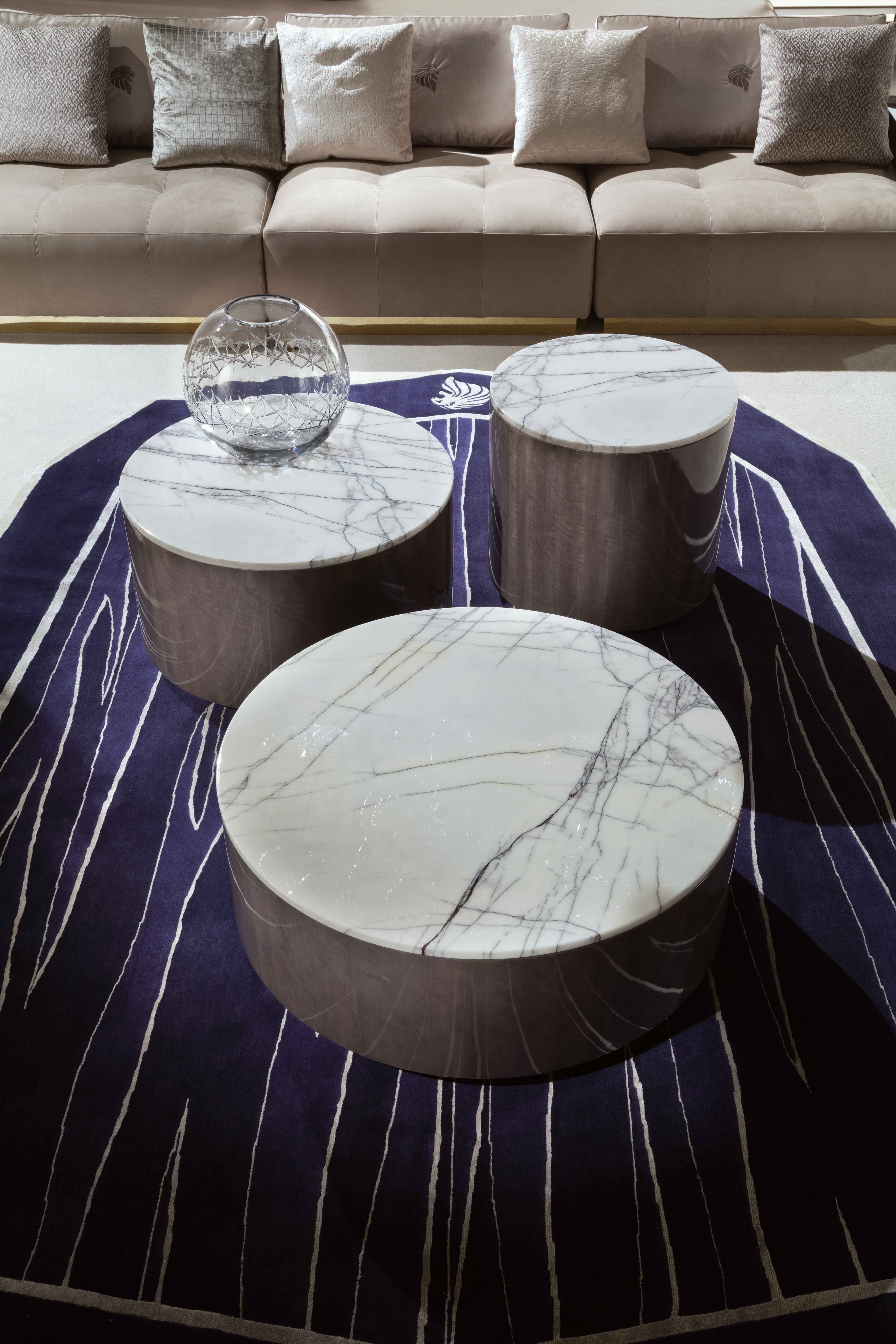 小圆鸡尾酒桌在马科雷红木贴面与高光泽聚酯完成大理石顶部。