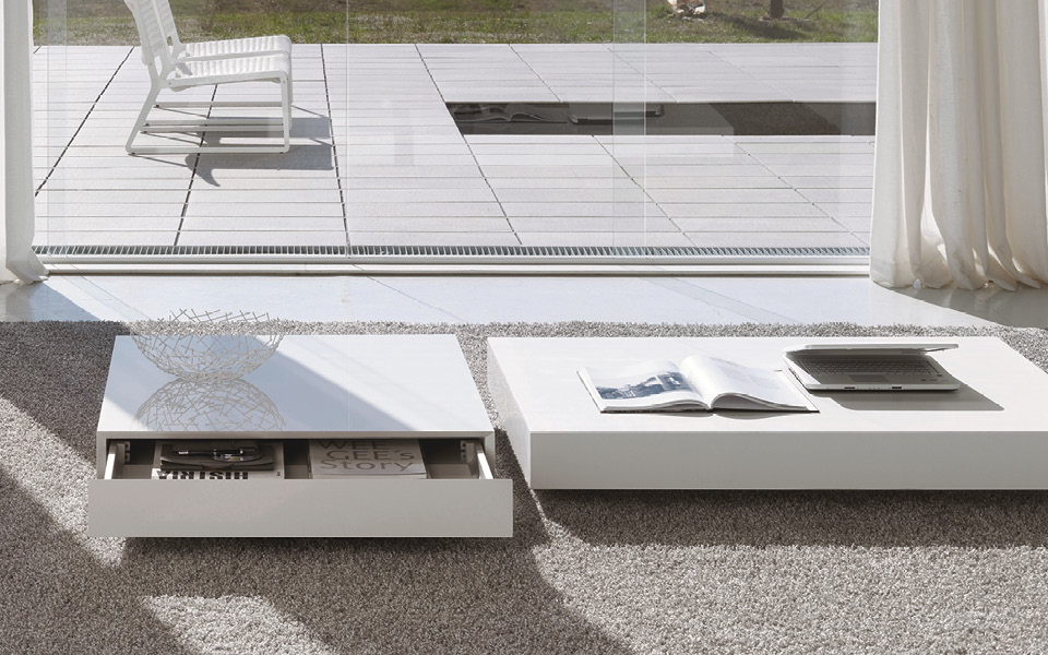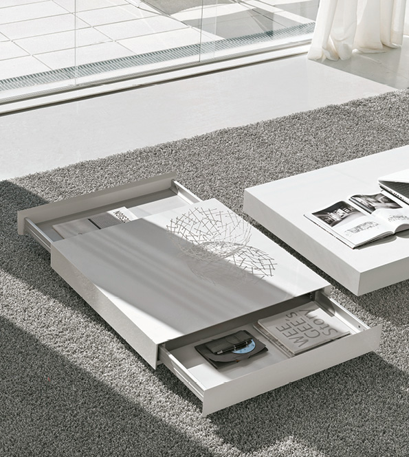 长凳咖啡桌的决定性形状配备了抽屉和推拉打开系统。咖啡桌,提供有用的存储解决方案,具有抽屉与完美的美学, 几乎使他们难以察觉。