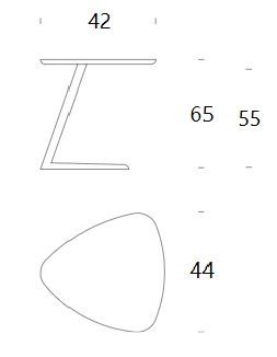 一张带有三面顶的小桌子,搁在涂漆金属的三脚架底座上。平衡集中在颜色和材料上,以平静的色调:顶部为实心橡木、天然或栗色,底部为亚光黑色;顶部涂漆中密度纤维板,哑光白色与其底座一样。