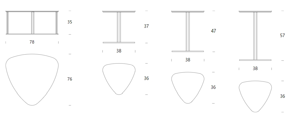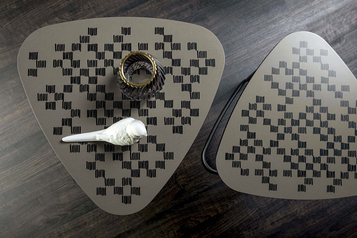 咖啡桌的组成,底座为漆面金属,桌面为漆面中密度纤维板和数字印刷或锤击玻璃。各种高度和尺寸以满足各种需求。