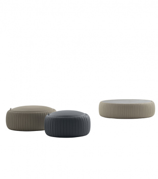 Plissé 既可以提供带钢化玻璃桌面的咖啡桌的功能,也可以提供舒适的容器坐垫凳的功能。它有两个版本,特点是在生态皮革上手工制作褶皱。由于有大量的颜色可供选择,生态面料的选择变得更加有趣。