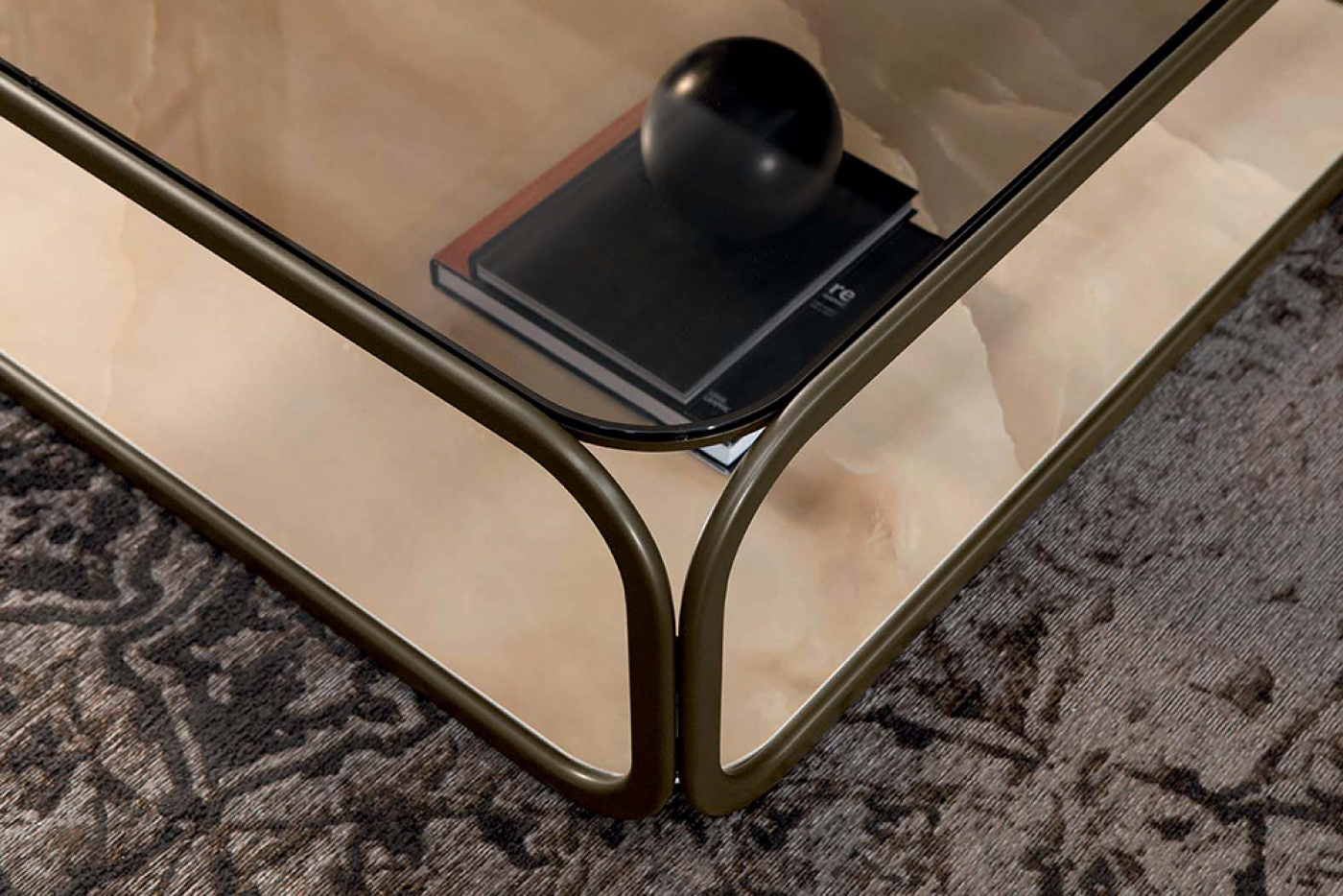 Remind 系列以 60 年代的名义诞生,采用弯曲的金属结构,巧妙地结合古铜色玻璃和最好的瓷器饰面,确保一切顺利。