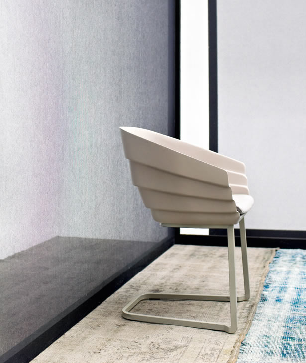 外壳在结构整体聚氨酯和悬臂基漆钢。悬臂椅可堆叠多达 4 个单元。