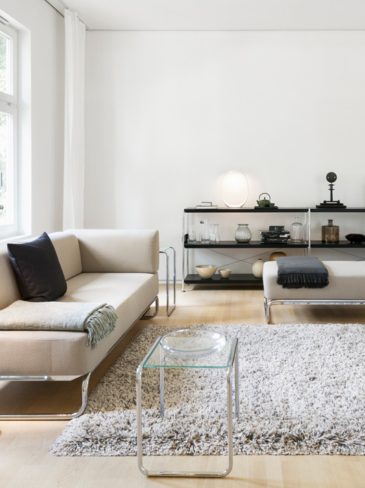 迈克尔·托内特完善的弯曲木技术是马塞尔·布劳尔使用弯曲管状钢实验的灵感来源。B 9的四件套筑巢表是根据这个想法开发的。小桌子可以用各种方式 - 作为座位组的侧桌,作为实用的存储表面或作为鲜花花瓶的完美场所。使用桌子后,它们可以以节省空间的方式轻松地被推到彼此下面。此系列的特点是功能简单 - 表集仅由镀铬、弯曲管状钢和矩形面板组成。