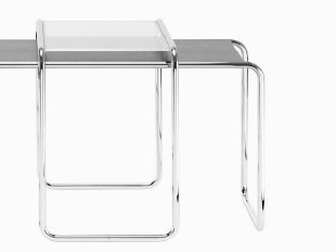 长而窄的侧桌,如B10,非常适合当你需要快速放下一个对象 - 并再次找到它。它们也是家庭和办公室的装饰性吸引眼球器。今天,他们直线的美学看起来很熟悉我们。他们的发明者马塞尔·布劳尔(Marcel Breuer)用他优雅、简约的管状钢制家具,与超载和过度装饰的生活方式作斗争——1920年左右仍然无处不在。在初步试验了当时一种新材料管状钢之后,马塞尔·布吕尔开发了一系列小桌子,包括长而窄的侧桌B 10。同时,他正在研究一个创新的椅子设计。冷弯曲管状钢具有其强度和弯曲性能,使这种结构成为可能。第一件由管状钢制成的家具有腿部和打滑,但尚未利用管状钢的弯曲特性。从1928年开始,布劳尔开始制造我们今天都知道的悬臂椅的原型。Mart Stam 为他们提供了由十块长度相等的管状钢和连接它们的管道配件组成的悬臂椅的原型,起初,这些钢管是刚性和不灵活的。布劳尔的设计被认为是现代家具史上的里程碑。Thonet 很早就认识到管状钢制家具的潜力,与前卫的设计师合作,在 20 世纪 30 年代成为世界上最大的管状钢制家具生产商。