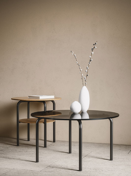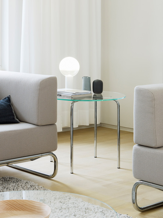 重新发现一个多才多艺的经典:在包豪斯100周年之际,我们重新发行了路德维希·米斯·范德罗赫的MRE 515圆桌。原版可作为 1935 年 Thonet 管状钢制家具目录的翻版,配有管状钢架和玻璃桌面。这张桌子大概是在1928年左右由米斯·范德罗赫设计的克雷菲尔德的埃斯特和兰格之家背景下制作的。贝绍·马盖尔工作室以全新的面貌设计了对 MR 515 的更多诠释,从而对这款家具经典作品的优雅进行了敏感的点缀。它结合了现代的使用理念和技术细节与当代的触觉。马塞尔·贝索和伊娃·马盖尔对桌子系列的看法仍然接近于原来的设计,但细节使不同。他们对设计的修订既微妙又技术性。玻璃面板下方的桌腿中央交叉点特别优雅。基于对表原始版本的研究,可选搁板的想法也复活了,它为表系列增添了额外的功能和舒适性。