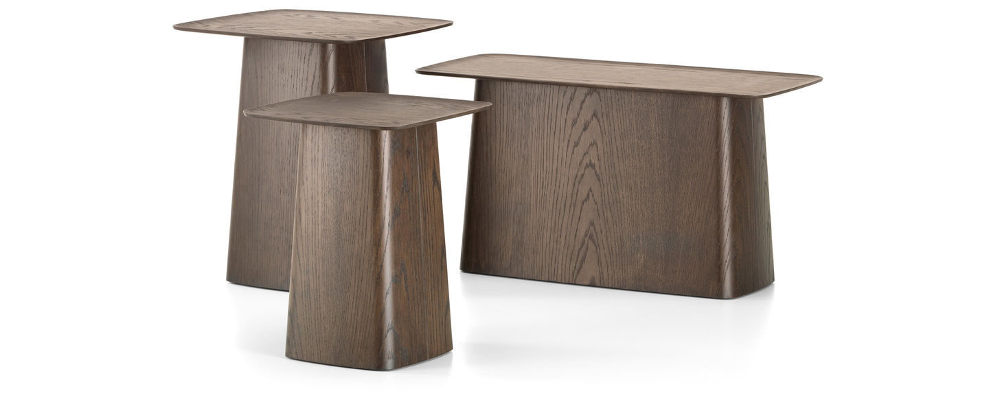Ronan 和 Erwan Bouroullec 的木制边桌的细长桌面有一个轻微弯曲的嘴唇,赋予它们优雅,几乎是日本的外观。轻巧的临时桌子有三种尺寸,天然橡木、深色橡木或胡桃木贴面。