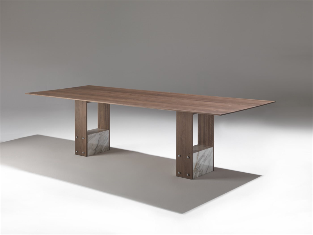 卡内塔核桃的长方形餐桌,有大理石底座。
