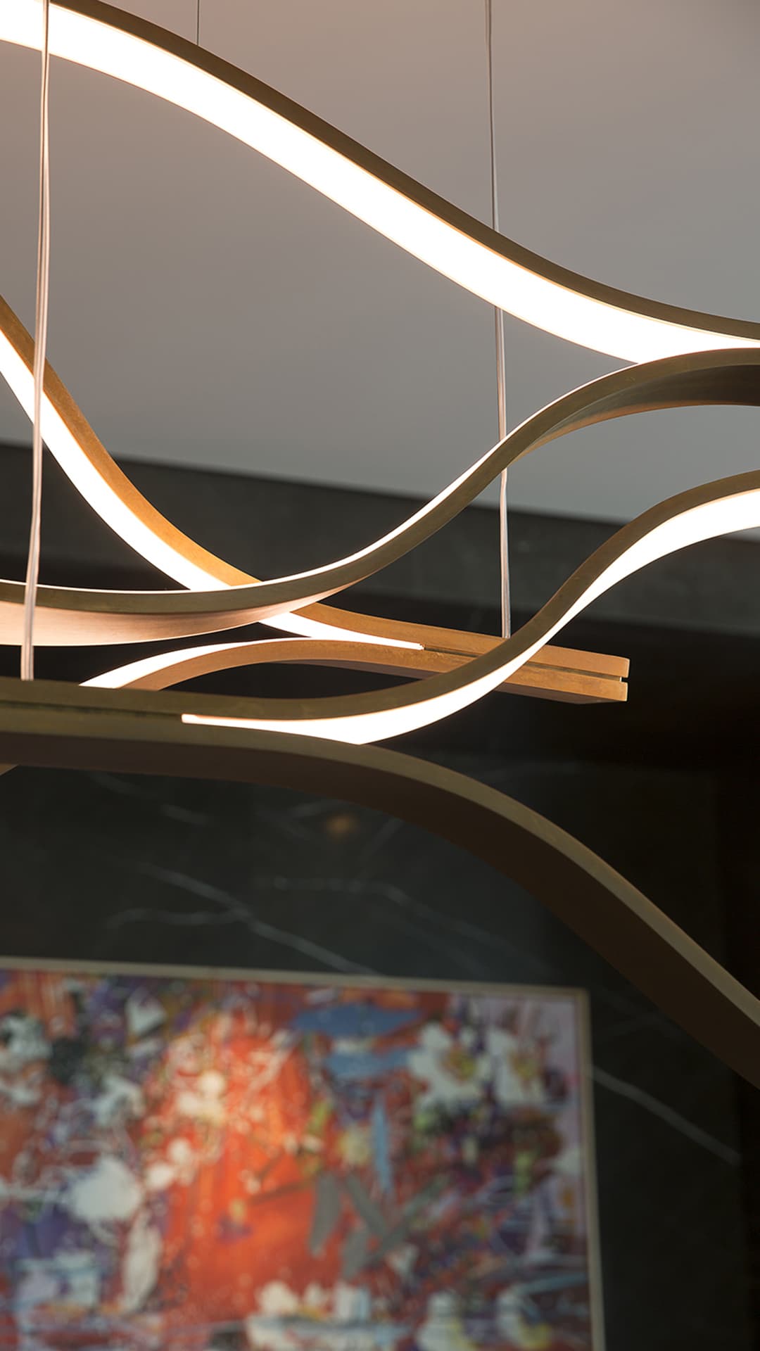 悬挂式暖光节能led灯,可照明各种尺寸和类型;在吊顶莲座上安装变压器,低压电源通过悬挂电缆供电。可提供额外的温暖灯(无需额外费用)。可提供带远程变压器的灯的替代固定系统。可控要求。仅供室内使用。标准整体高度180厘米。