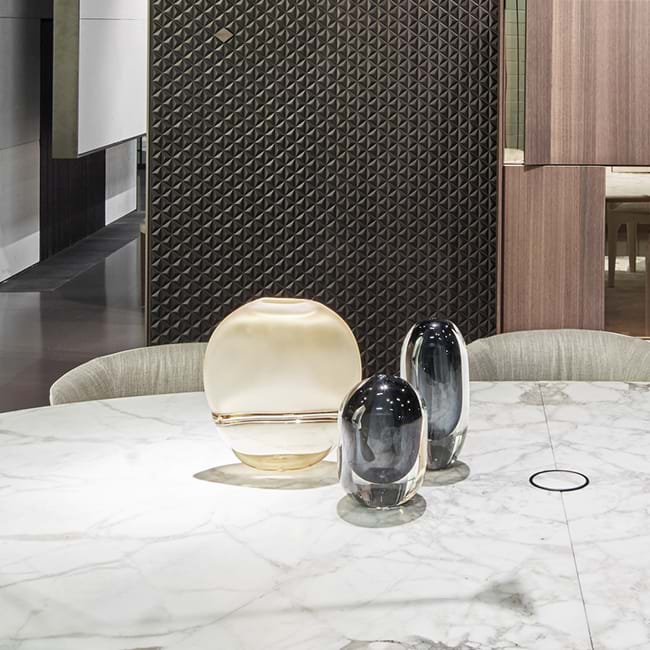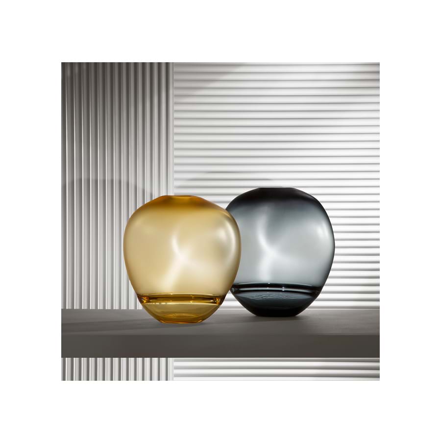 具有特定有机形状的嘴吹花瓶。该件是著名的内部环与热工作与膜技术,将缎面上部从下抛光部分划分。