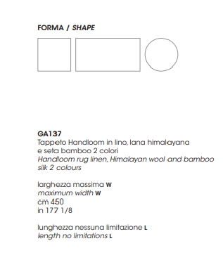 手工地毯使用亚麻布、喜马拉雅羊毛和竹丝手工编织。Cross Over 呈现一种模式,可回忆矩形和方形,由丝绸中的插入物创建,产生色效果,使地毯具有光彩。