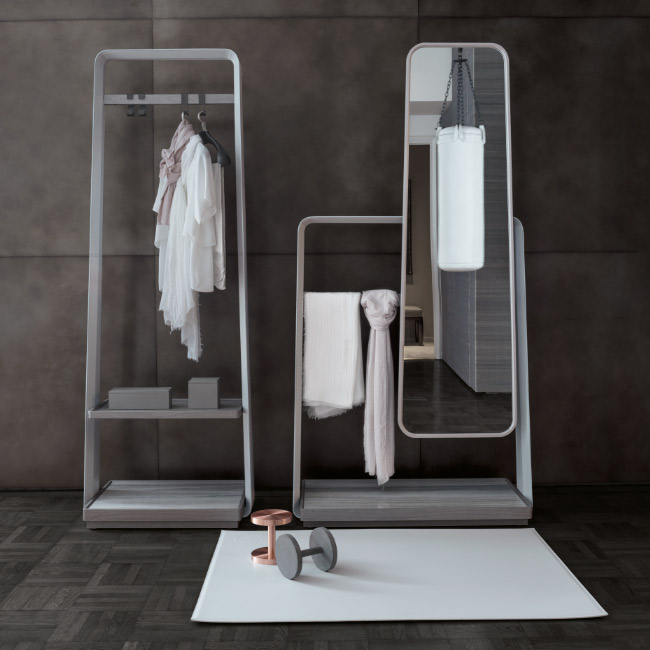 木材、鞍皮和大理石相结合,提供意想不到的触觉体验。代客站在鸽子灰色或石板灰色枫木和鞍皮革的横向轮廓。