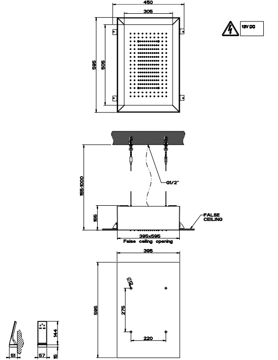 300X500 内置淋浴系统,具有降雨功能和色谱治疗效果,用于假天花板安装。电子部分包括远程防水控制和挂钩。要与 12V 电源匹配,不包括在内。要完成与海湾 r (不包括)