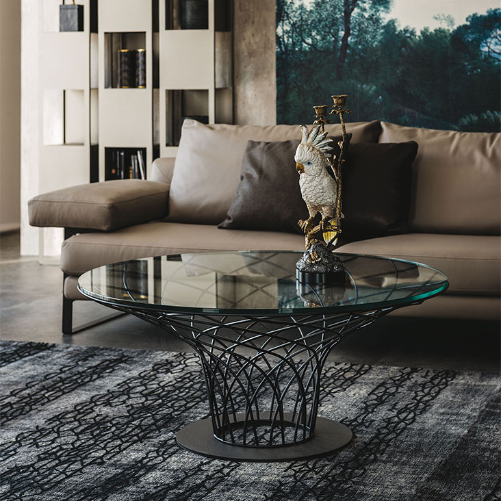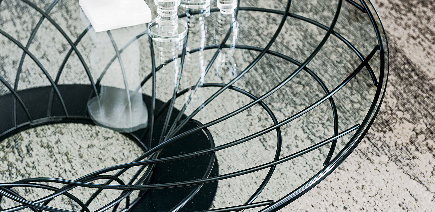 咖啡桌采用石墨 (GFM69)、白色 (GFM71) 或黑色 (GFM73) 压花钢底座。A 和 B 版本的顶部采用石墨 (GFM69)、白色 (GFM71) 或黑色 (GFM73) 压花钢。C 和 D 版本的顶部采用透明玻璃。玻璃台面铺设在底座上。