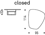 两高可变形咖啡桌,框架为钛 (GFM11) 或黑色 (GFM73) 压纹漆钢和烟灰色镜面玻璃。面板采用卡纳莱托胡桃木 (NC)、烧橡木 (RB)、开孔哑光黑榆木 (OLM73)、拉丝青铜色或拉丝灰色。