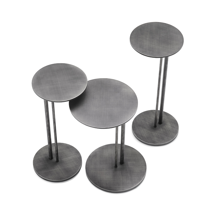 拉丝青铜或拉丝灰色钢咖啡桌。