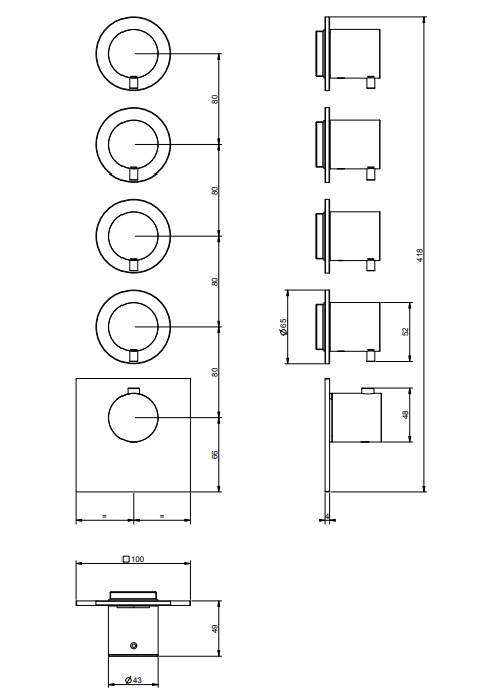 壁挂式恒温式大容量搅拌机的外部部件。垂直/水平设置,具有四个单独的退出