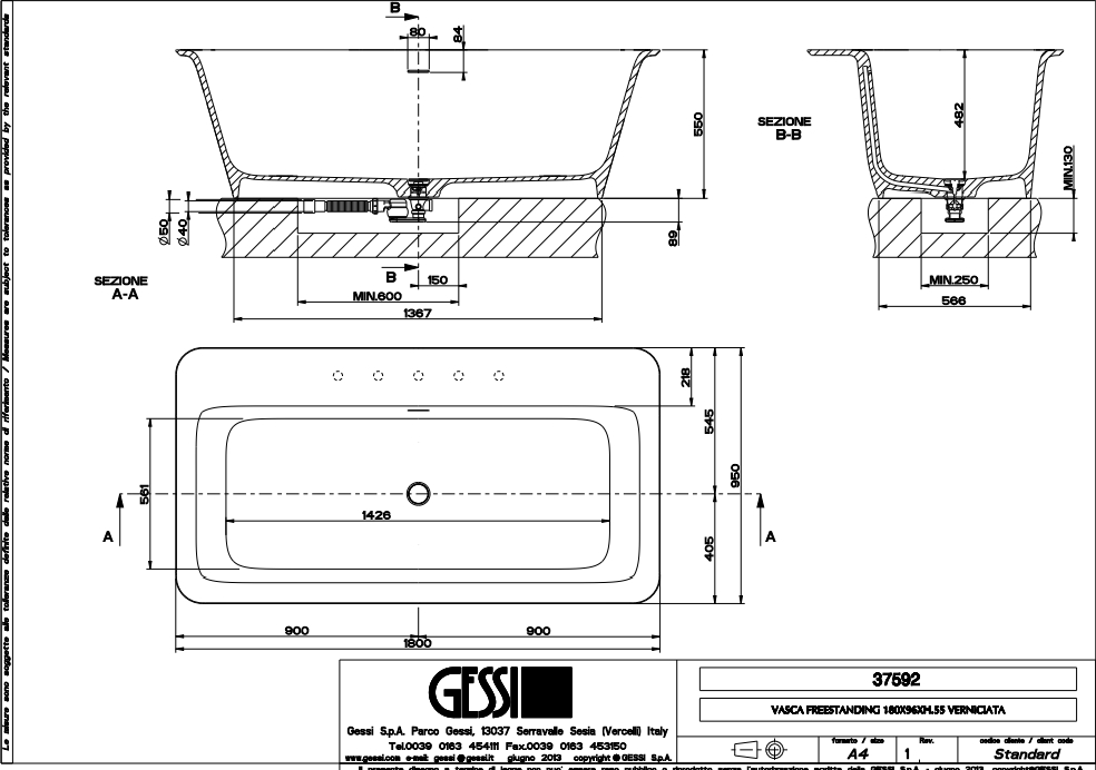 克里斯塔尔植物的独立浴缸®侧缘。外部漆。可能在边缘上安装水龙头。包括废物。