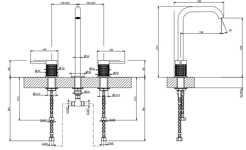 ‎带喷口的三孔盆搅拌机,带柔性软管。没有浪费‎