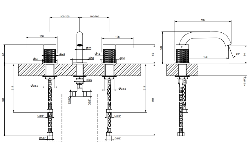 ‎带喷口的三孔盆搅拌机,带柔性软管。没有浪费‎