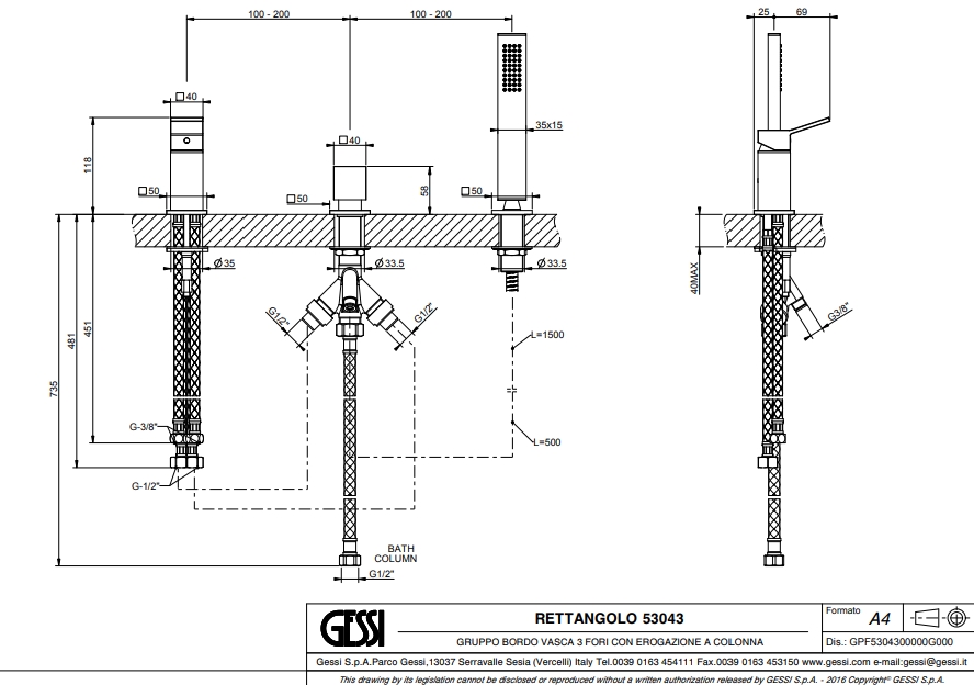 ‎三孔浴缸搅拌机与分流器在喷口,1,50米柔性软管和防石灰石手淋浴‎
