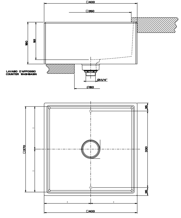 陶瓷中的防洗脸盆,没有溢出的废物。包括陶瓷塞废物。用于柜台安装下固定基特姆 R3773 所需