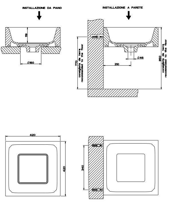 在克里斯塔尔植物的壁挂式或计数器洗脸盆®没有溢出的废物。