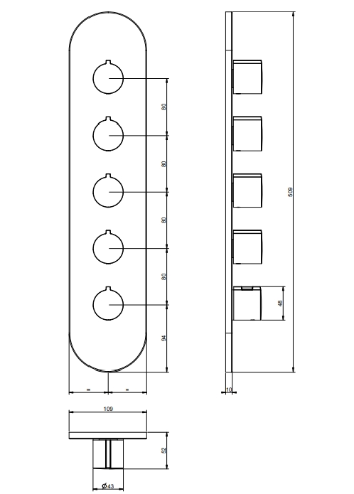 壁挂式恒温式大容量搅拌机的外部部件。垂直/水平设置,具有四个单独的退出