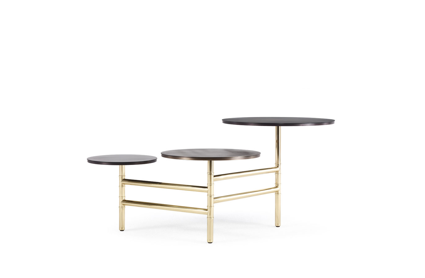 独创的中央桌子,将精致的建筑细节与奢华的饰面融为一体。多功能组合,带有移动臂,提供不同的使用可能性。优雅的金属上衣,具有不同的高度,尺寸和饰面,可以适应多样化的需求,创造出平衡和对比的精彩游戏。铰接式边桌。金属结构,带光泽黄铜表面处理。金属表顶,深青铜色,浅青铜色,亮金色饰面。