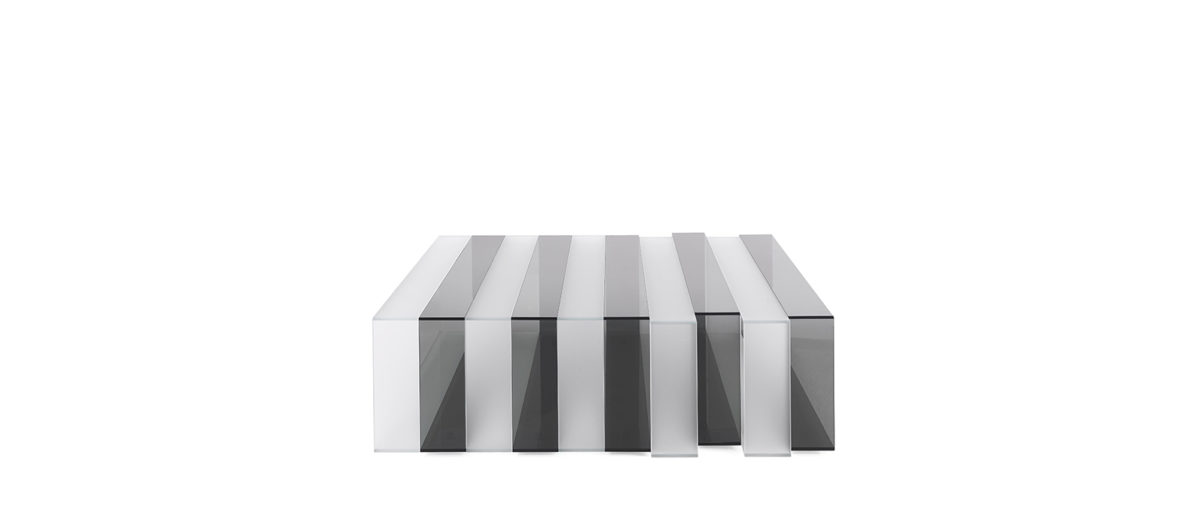 纯粹的体积和基本线条:这些是Jenga中央桌子的主要特征。具有精致设计的构图,表现为连续的浅色和深色玻璃矩形,以45°组装并在不显示移植物或接头的情况下连接在一起。整个结构由玻璃制成,整个作品以独特的轻盈和精致的块状呈现给人以。在一场令人惊讶的颜色和几何游戏中,明暗玻璃的组合今年在新的色彩调色板中被重新诠释,结合了缎面超透明和烟熏玻璃。中央桌子采用烟熏和缎面超透明玻璃结构。古铜色饰面的提示。