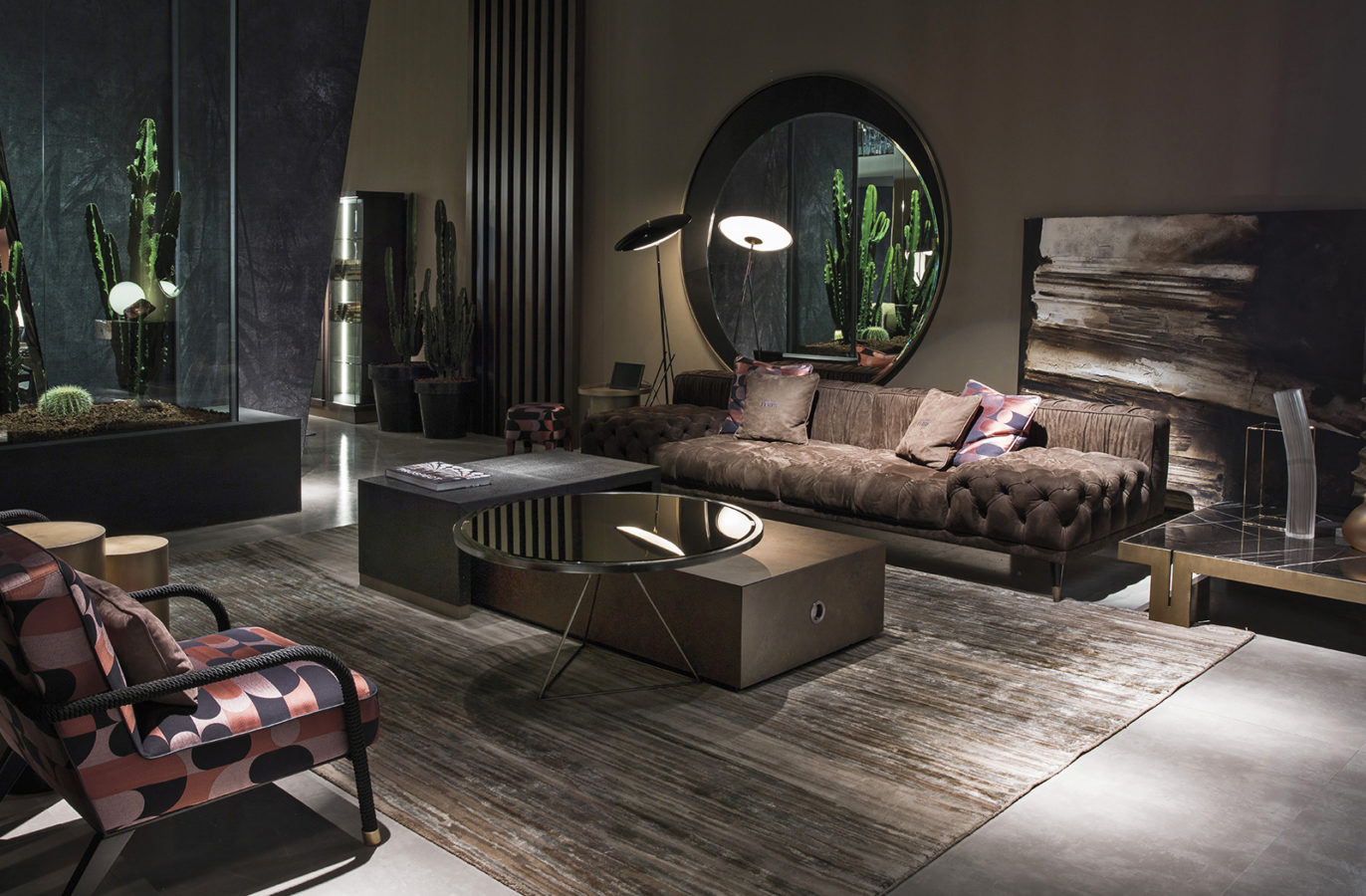 皮革和金属:对比鲜明的纹理和材料,采用简约而精致的设计,其特点是柔软的皮革内饰和底座的青铜饰面。与 Flair 表的组合允许您创建原始几何构图。中央桌子,结构为多层杨树,覆盖着皮革猫B|L.06.01. 金属底座,镀铜色表面处理。