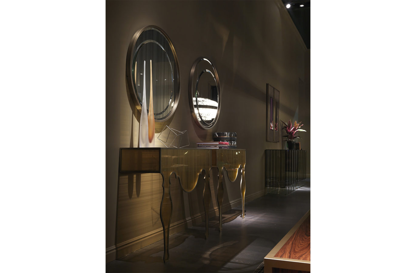 控制台采用金属结构,饰有青铜饰面。装饰古铜色玻璃元素。