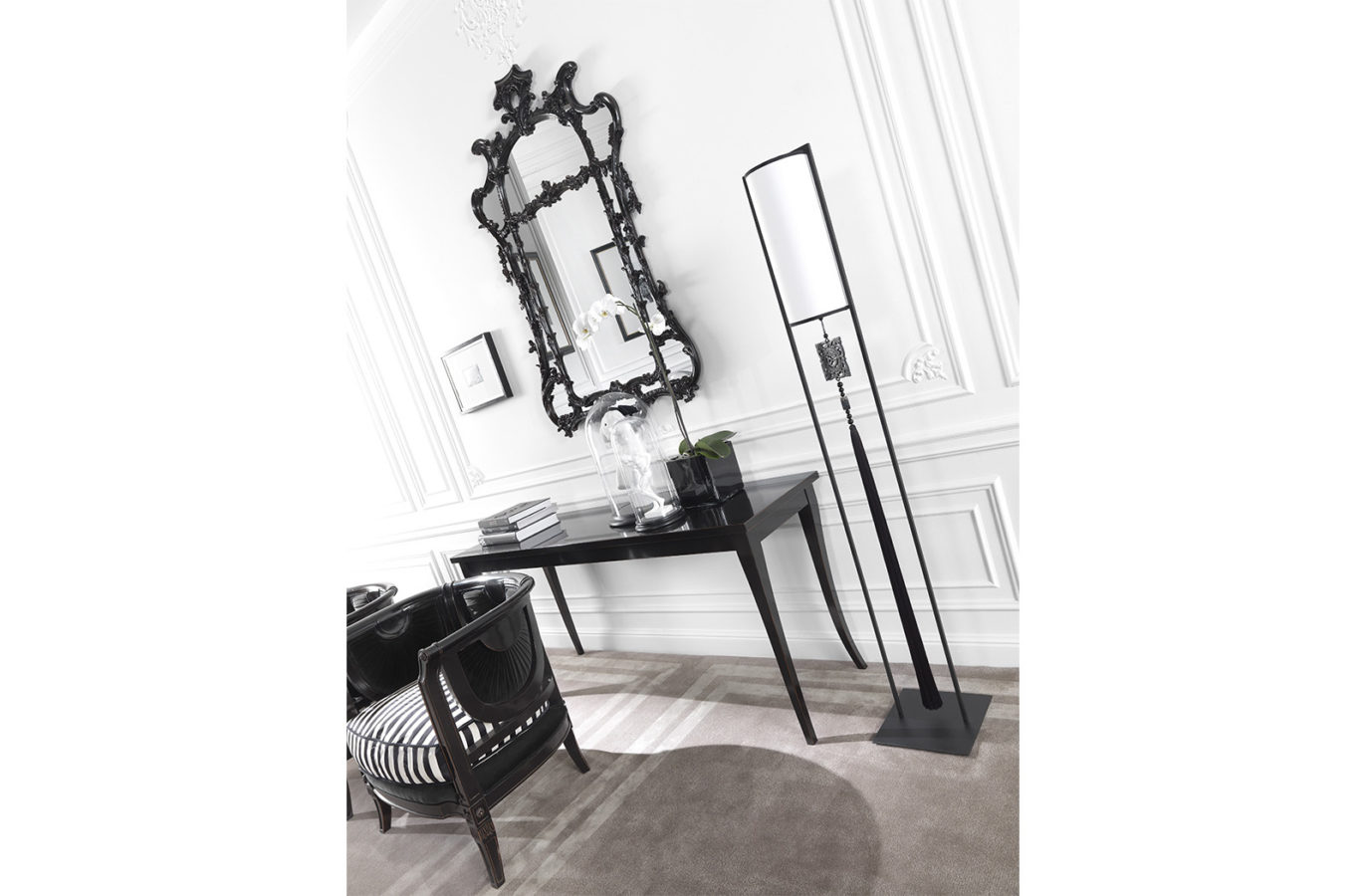 控制台采用山毛榉木结构。黑色漆面。