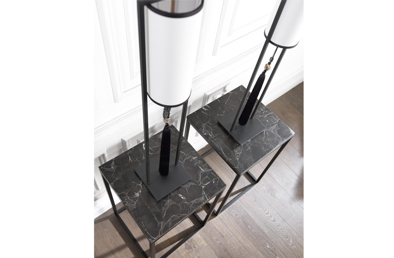 台灯采用垫子黑铁结构。色调与象牙色缎布。翡翠吊坠与真丝流苏。
