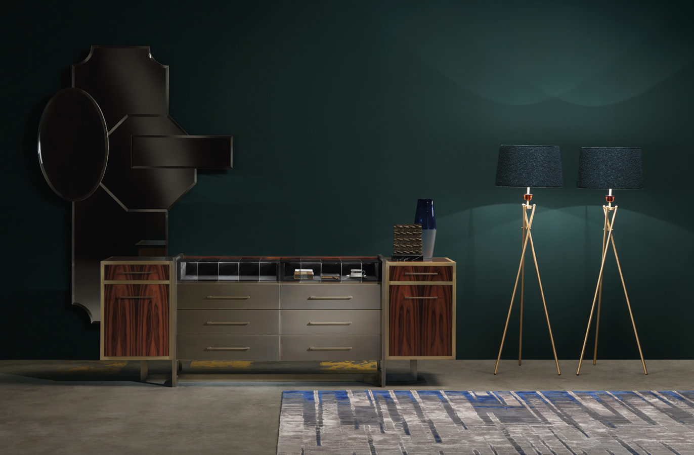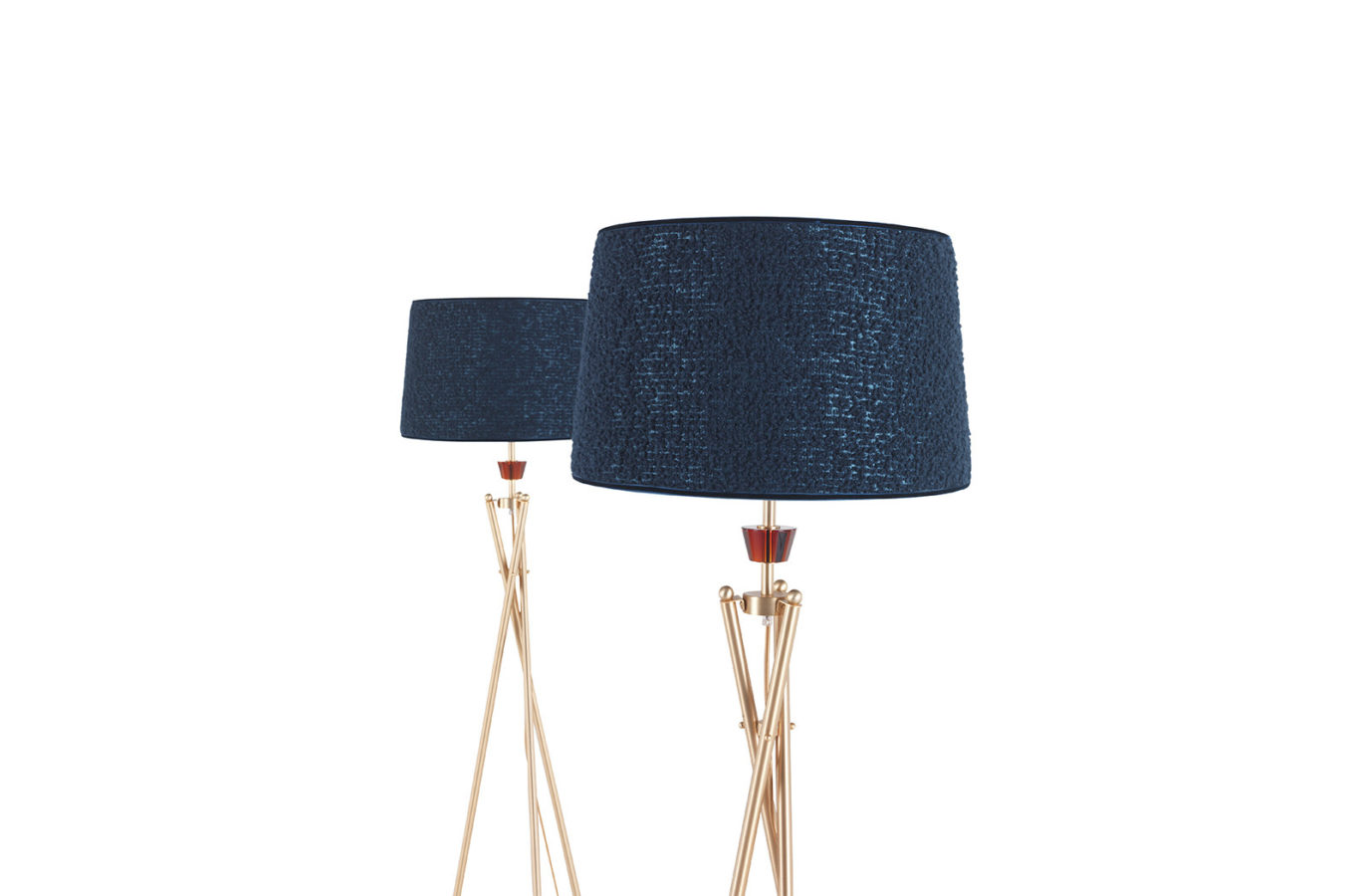 黄铜结构落地灯。窗帘在织物猫。D |L.18.54. 彩色玻璃的细节。哑光金饰面。