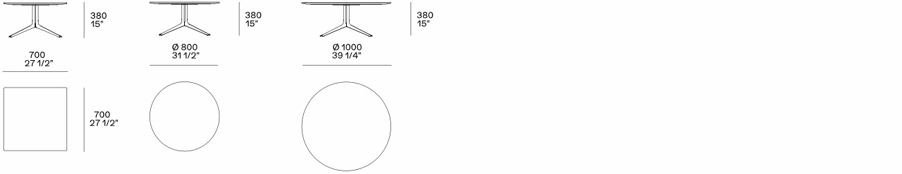 该系列具有优雅和轻盈的形象,薄的顶部由木材,大理石,或光滑和垫子漆完成。两种高度和不同形状的桌子便于多种元素的组合,这些桌子很容易包括在生活区,并与同名沙发系统完美结合。