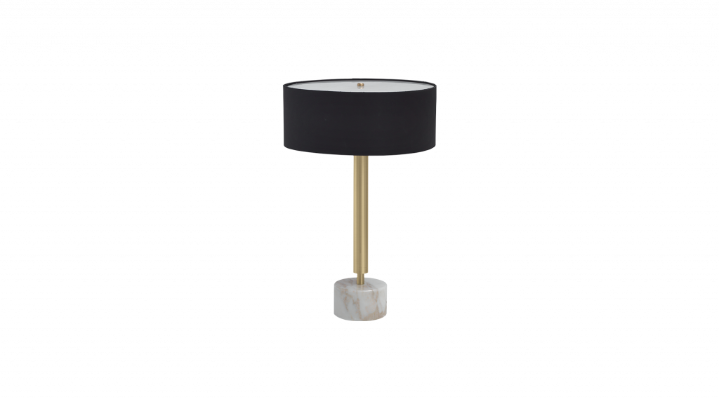 独特的元素当然是金色的 Calacatta 大理石底座,结合精细的缎面黄铜结构和具有精致几何形状的黑色缎面灯罩,使其成为肯定和成功的象征。